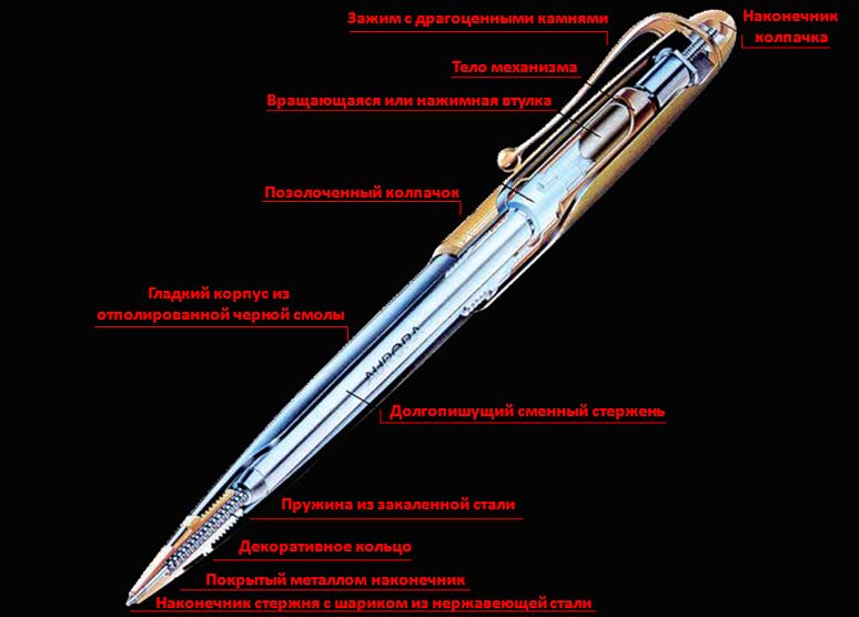 Ручка-роллер состоит из: колпачка, корпуса, пишущего узла и стержня.